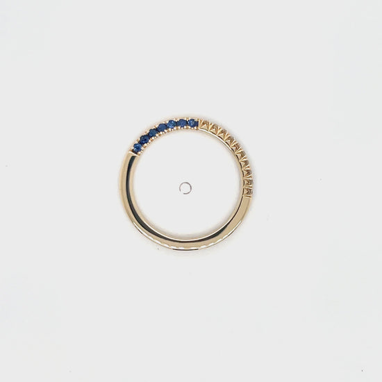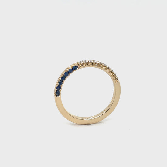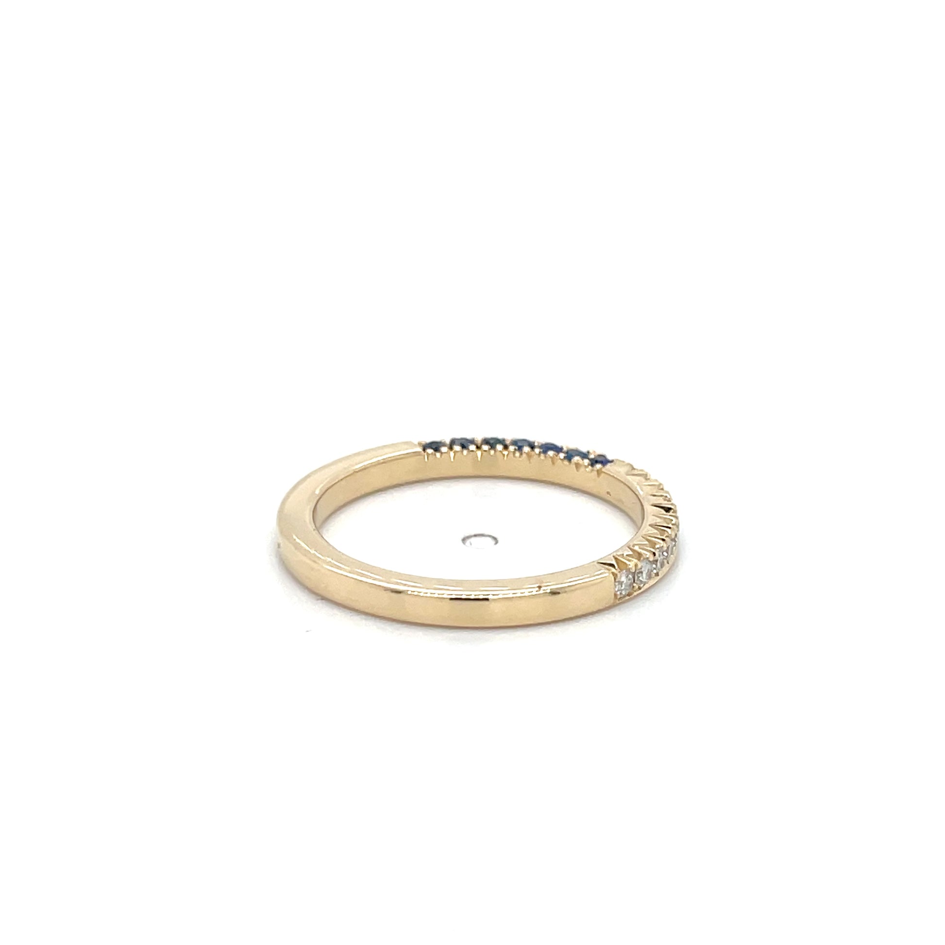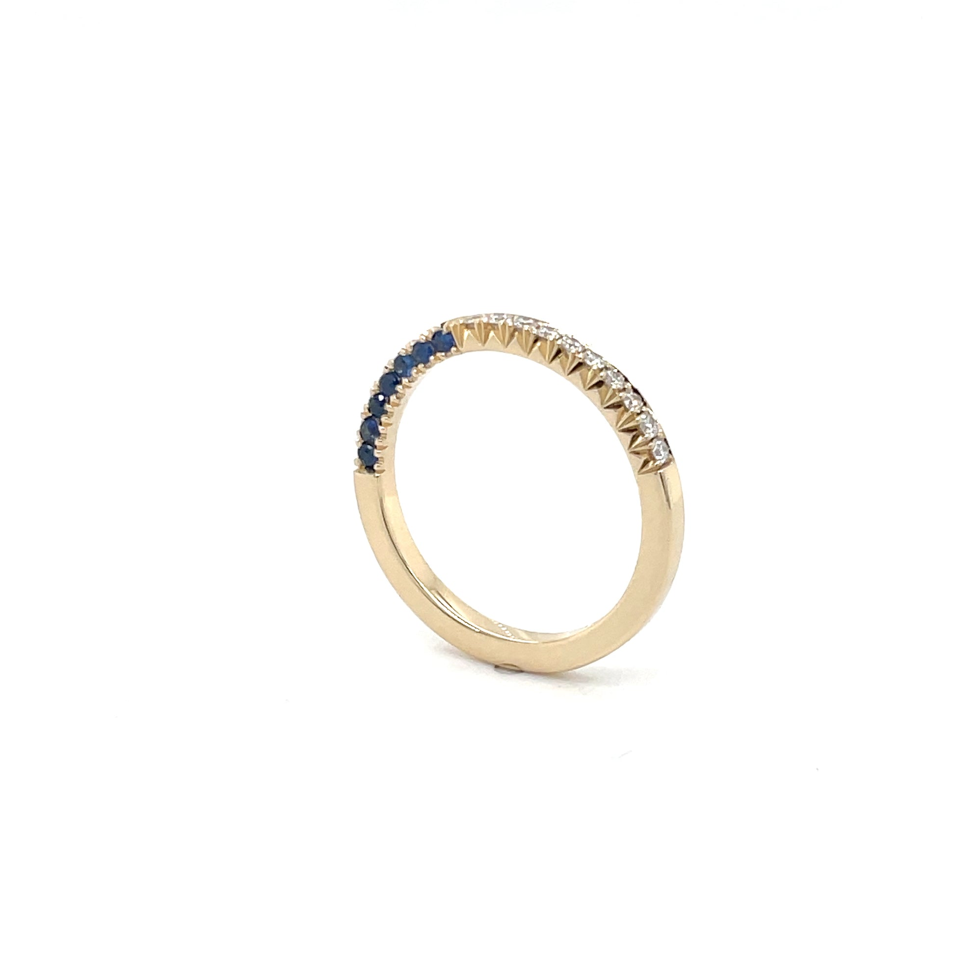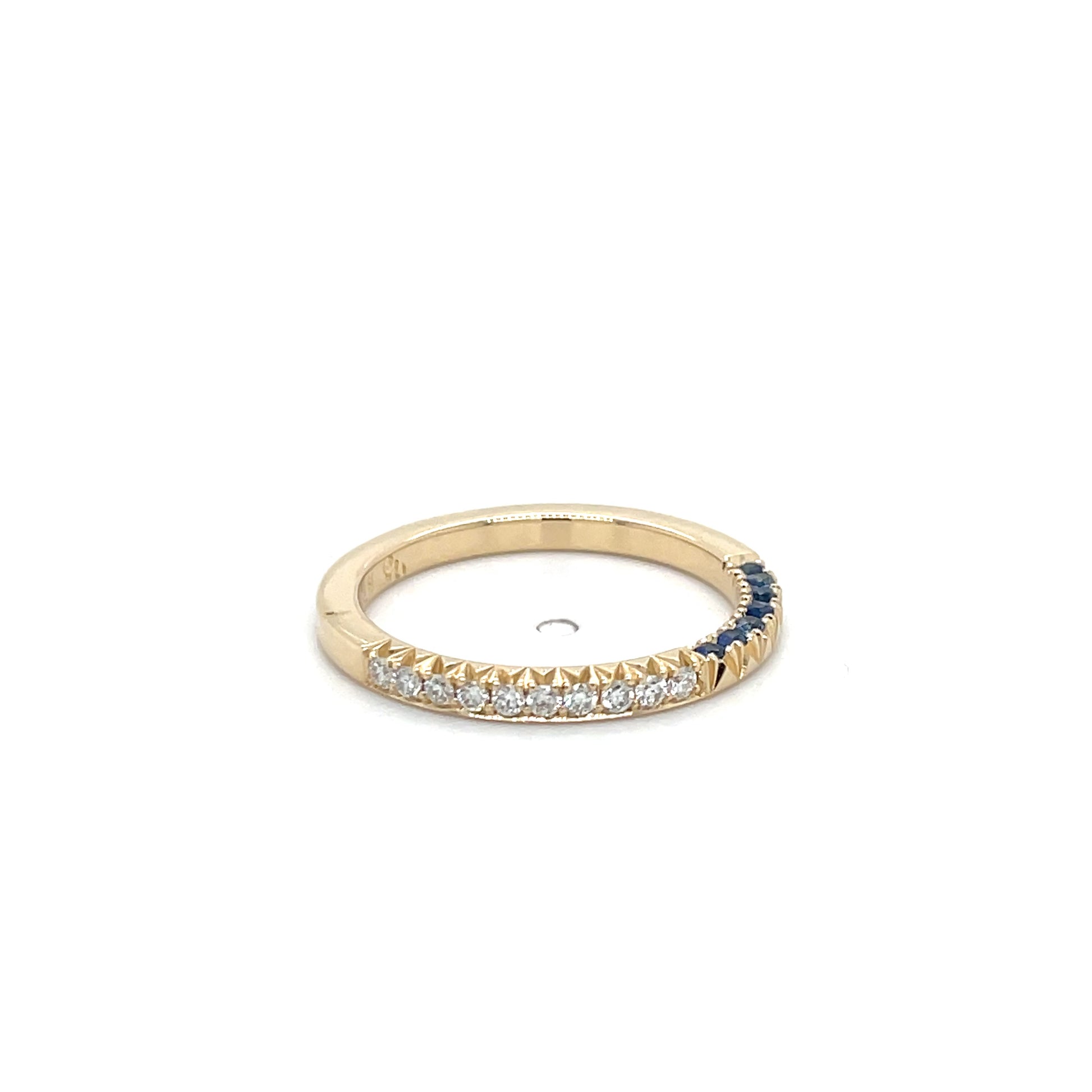 Indulge in luxury and style with our Handmade 14k Gold, Blue Sapphire + Diamond Stacker Band, a timeless addition to any jewelry collector's treasure trove.