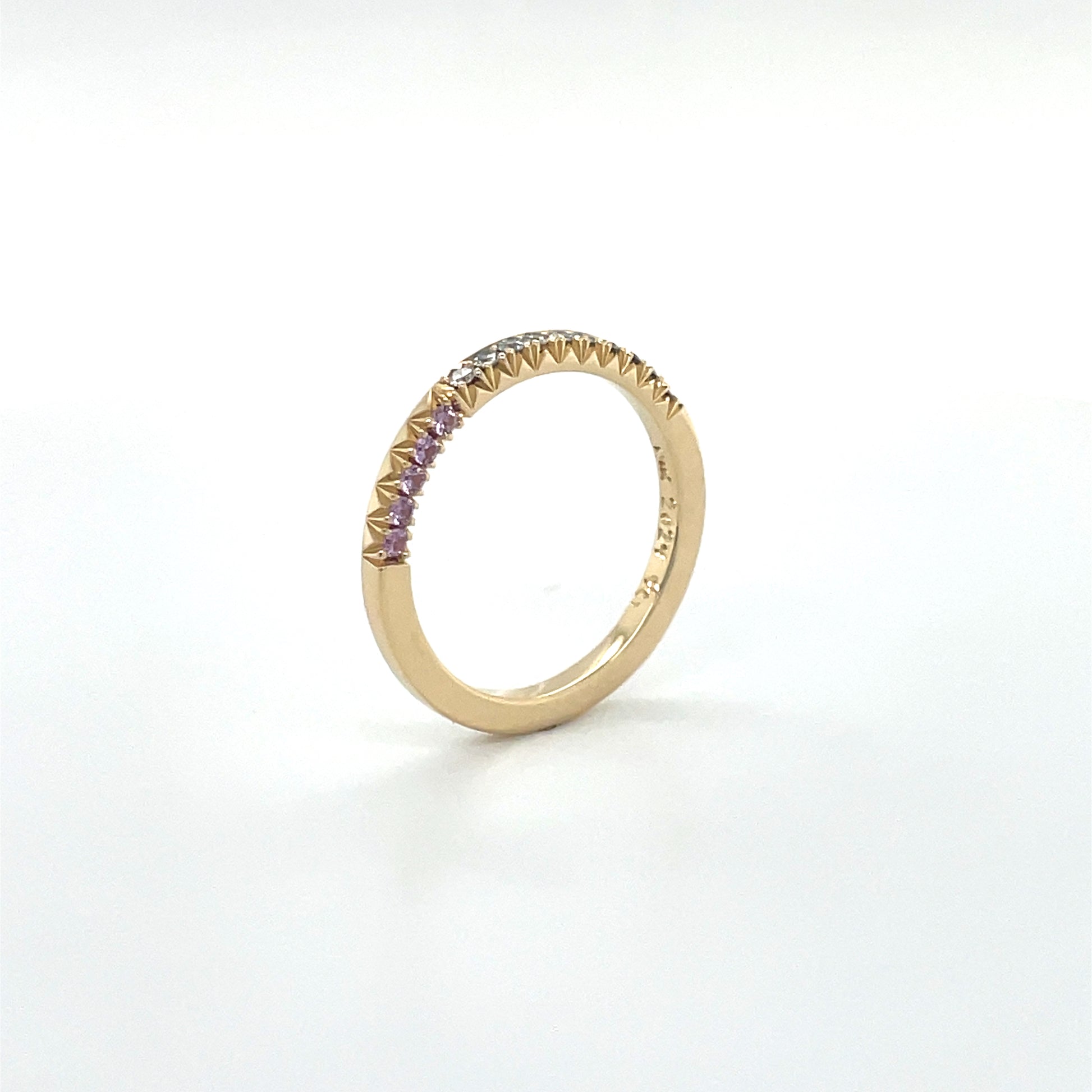 Handmade by William Adams, this stacker ring is designed with collectors in mind—versatile enough to wear alone or mix and match with your favorite pieces. Its eye-catching color palette and elegant setting bring a fresh, sophisticated edge to any stack.