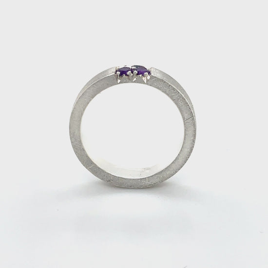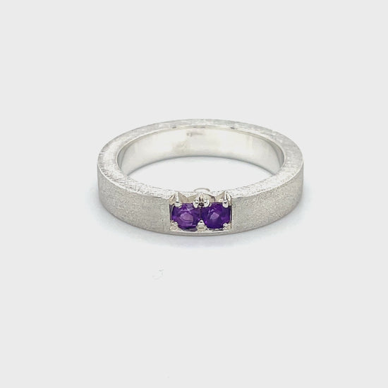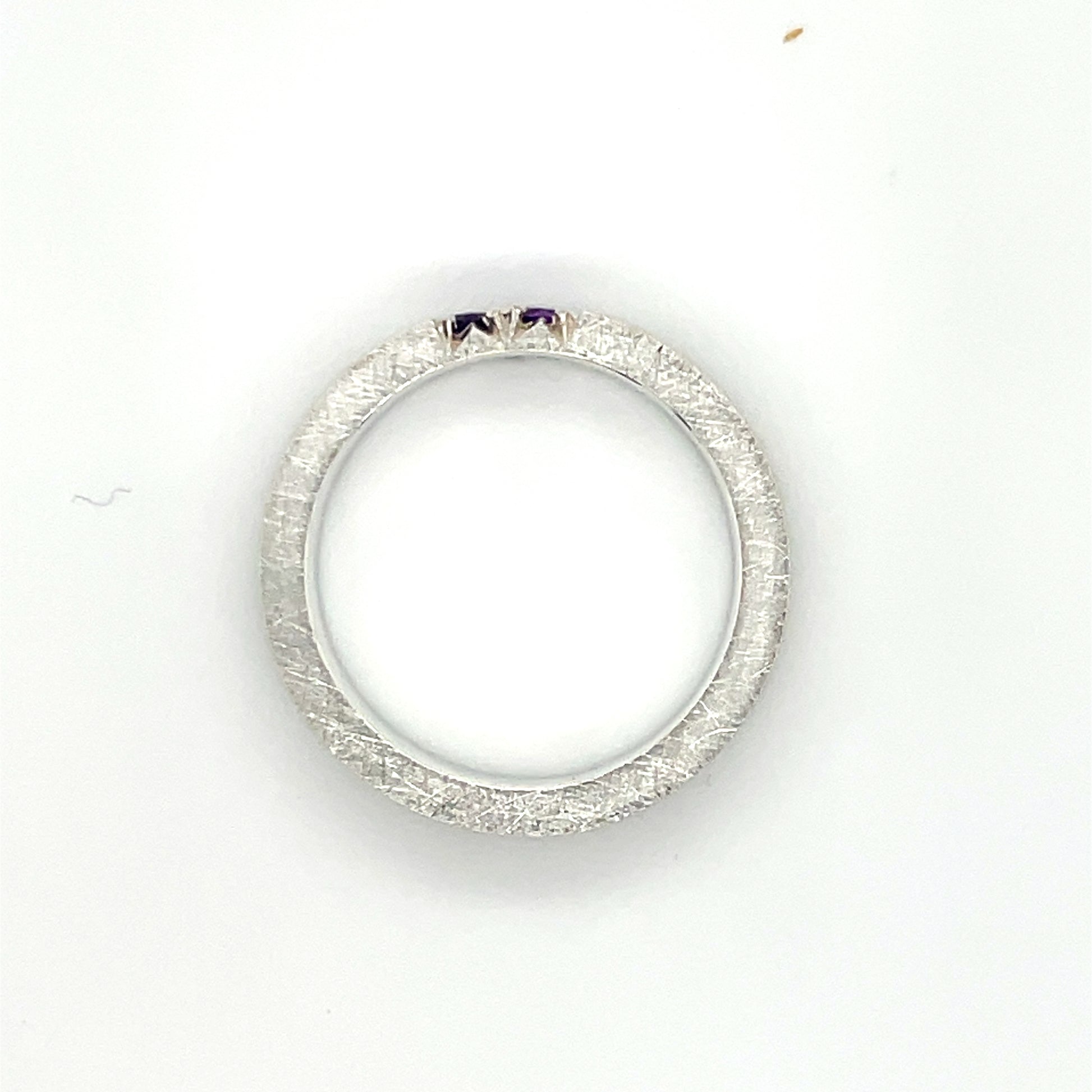 Elevate your collection with our stunning Handmade Sterling Silver+Amethyst Stacker Band. This exquisite ring features textured sterling silver and deep purple amethysts, intricately crafted into a stacker band.